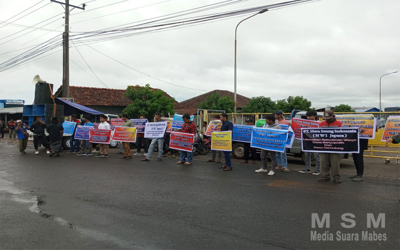 MediaSuaraMabes, Jepara – Puluhan warga dari Desa Banyuputih dan Gemulung, Kecamatan Kalinyamatan, Kabupaten Jepara, menggelar aksi unjuk rasa di depan gerbang PT Hwaseung Indonesia (PT HWI), pada Senin pagi, 26 Mei 2025.