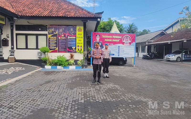 MediaSuaraRakyat (MSM Network), Gilimanuk Bali – Polsek Kawasan Pelabuhan Gilimanuk melaksanakan apel pagi sekaligus jam pimpinan yang dipimpin langsung oleh Kapolsek Kawasan Pelabuhan Gilimanuk, Polres Jembrana, Polda Bali, KOMPOL I Komang Muliyadi, S.H., M.M. Kegiatan yang dimulai pukul 08.00 WITA ini berlangsung di halaman Mapolsek Kawasan Pelabuhan Gilimanuk, Lingkungan Jineng Agung, Kelurahan Gilimanuk, Kecamatan Melaya. Apel dihadiri oleh Waka Polsek Gilimanuk, Akp Ida Bagus Ketut Trisana, S.H., beserta para Kanit, Panit, Kasi, serta seluruh personel bintara Polsek Kawasan Pelabuhan Gilimanuk., Selasa (05/11/2024).