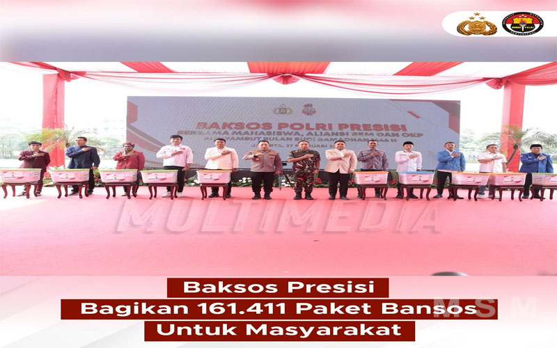 MediaSuaraRakyat (Jaringan MSM), Jakarta – Kapolri Jenderal Polisi Drs. Listyo Sigit Prabowo, M.Si., memberikan bantuan sosial kepada masyarakat dalam rangka menyambut bulan suci Ramadan. Bantuan sosial diberikan dalam acara Baksos Polri Presisi bersama mahasiswa, aliansi Badan Eksekutif Mahasiswa (BEM) dan Organisasi Kemasyarakatan Pemuda (OKP) menyambut bulan suci Ramadan 1446 Hijriah di Lapangan Bhayangkara Mabes Polri, Jakarta, Kamis (27/2).
