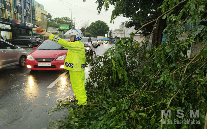 “Anggota kepolisian bersama instansi terkait sudah turun ke lapangan untuk memastikan tidak ada korban jiwa serta membantu membersihkan pohon tumbang yang menghambat jalan,” katanya.