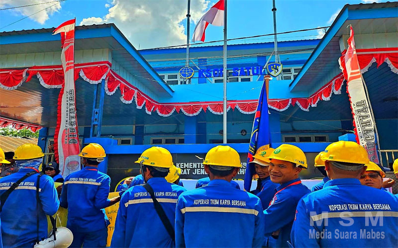 MediaSuaraMabes, Tanah Bumbu — Kepala Kantor Kesyahbandaran dan Otoritas Pelabuhan (KSOP), Tanah Bumbu, Kalimantan Selatan Oka Harry Putranto akhirnya menyerah dan memenuhi tuntutan pekerja dan buruh Koperasi TKBM (Tenaga Kerja Bongkar Muat) anggota FSPTI (Federasi Serikat Pekerja Transport Indonesia) setelah didemo dan diancam akan membongkar bobrok Kantor KSOP Satui Tanah Bumbu, Kalimantan Selatan.
