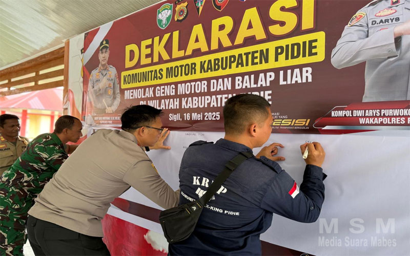 Para Komunitas Motor Kabupaten Pidie secara serentak mengucapkan komitmen deklarasi penolakan segala aktivitas geng motor dan balapan liar yang ada di wilayah Kabupaten Pidie.