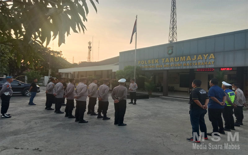MediaSuaraMabes, Bekasi – Dalam menyambut malam takbiran dan Hari Raya Idul Adha 1446 H,Mapolsek tarumajaya melaksanakan Kesiapan Apel gabungan yang dipimpin oleh Iptu. Abdul Hanan. SH wakapolsek Tarumajaya sebagai Inspektur Apel,yang dilaksanakan Halaman Mako Polsek tarumajaya ,Kamis ( 05/06/2025 ). Apel diikuti Kanit Binmas Kanit Lantas, jajaran Polsek tarumajaya dan jajaran POKDAR kamtibnas Sektor Tarumajaya .