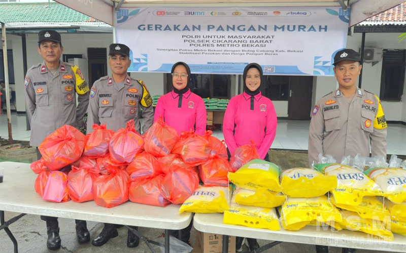 Dalam giat Gerakan Pangan Murah, Polsek Cikarang barat menjual murah bahan sembako sepeti Paket Beras 5 Kg dan 1 liter minyak goreng dengan harga Rp 60.000 di tambah pree terigu, Kecap Biskuit dan lainnya, sekeluruah di buat dengn paket sebanyak 200 paket.