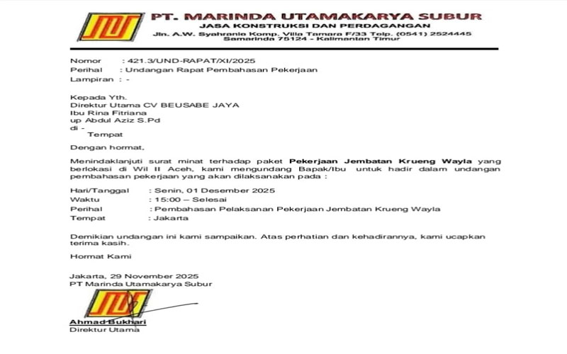 “Proyek Jembatan Waila ini diduga hanya menjadi ajang memperkaya diri oknum-oknum di Balai PUPR Aceh dan pihak Dirjen Kementerian PUPR,” tegas Hanafiah kepada Media Suara Mabes.