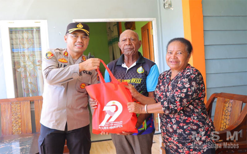 MediaSuaraMabes, Waropen – Dalam rangka memperingati Hari Bhayangkara Ke 79 Tahun 2025, Polres Waropen laksanakan anjangsana dan penyerahan tali asih ke para purnawirawan serta warakawuri Polri, Pondok Pesantren Ma’arif NU dan LKSA Agape, Kamis (26/06/2025).