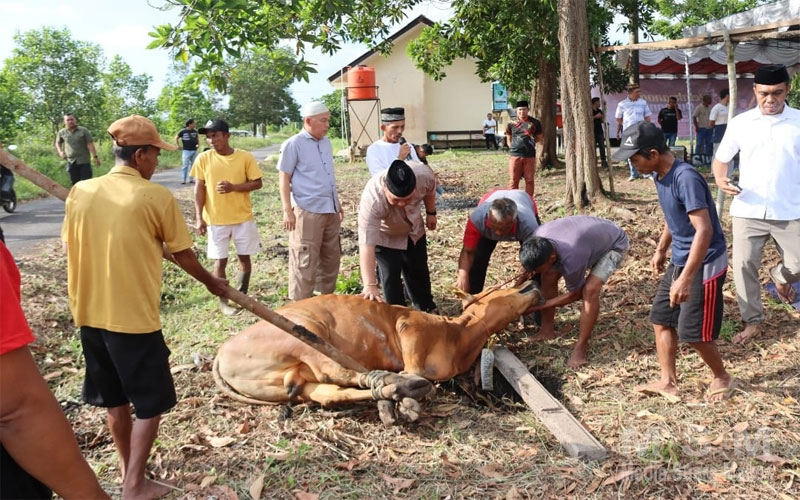 “Alhamdulillah hari ini kita dapat melaksanakan ibadah kurban. Ini bukan hanya rutinitas yang dilaksanakan tahunan, melainkan wujud kebahagiaan dan saling peduli antar sesama, Semoga menjadi keberkahan dan kebaikan bagi kita semua.” ujar AKBP Indra.