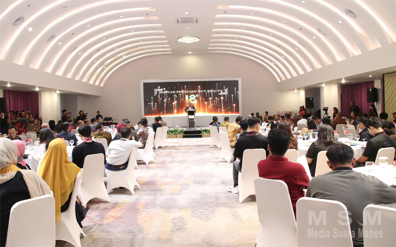 MediaSuaraMabes, Pontianak – Kepala Bidang Hubungan Masyarakat (Kabid Humas) Polda Kalimantan Barat, Kombespol Dr. Bayu Suseno S.H.,S.I.K.,M.M.,M.H., menghadiri Malam Puncak Hari Ulang Tahun (HUT) ke-18 RUAI TV dan peluncuran program “RUAI TV PEDULI” di Ballroom Cendana, Hotel Mercure Pontianak, Sabtu (23/8/2025) malam.