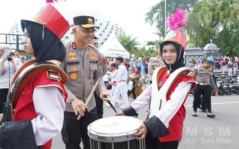 Sementara itu, dari pantauan dilokasi, Jenderal Bintang Dua Polri ini juga tampak menyempatkan turun langsung dari panggung kehormatan untuk memberikan semangat kepada para peserta parade karnaval.