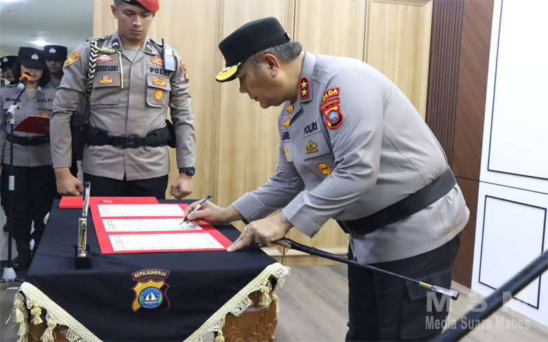 MediaSuaraMabes, Batam – Kapolda Kepri Irjen. Pol. Asep Safrudin, S.I.K., M.H., memimpin Upacara Serah Terima Jabatan (Sertijab) Kayanma dan Koorspripim Polda Kepri yang digelar di Lobby Seligi Sakti Marwah Negeri. Kegiatan ini dihadiri oleh Wakapolda Kepri Brigjen. Pol. Dr. Anom Wibowo, S.I.K., M.Si., Irwasda Polda Kepri, dan Pejabat Utama Polda Kepri. Jumat (8/8/2025).