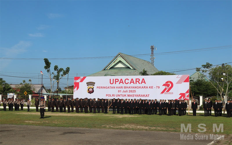 MediaSuaraMabes, Ketapang – Dalam rangka memperingati Hari Bhayangkara ke-79, Kepolisian Resor (Polres) Ketapang menggelar upacara yang berlangsung khidmat di halaman Kantor Pemerintah Daerah (Pemda) Ketapang Jalan Jenderal Sudirman Ketapang pada Selasa pagi (01/07/2025). Upacara ini dipimpin langsung oleh Kapolres Ketapang, AKBP Setiadi, S.H., S.I.K., M.H., yang bertindak sebagai Inspektur Upacara.