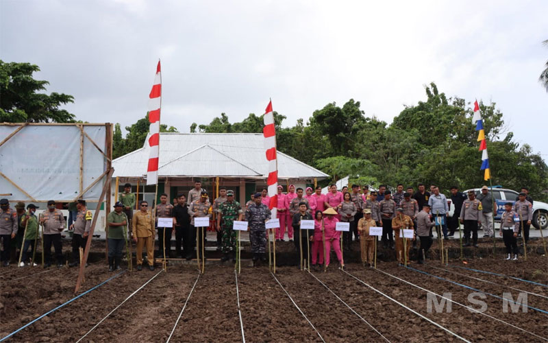 MediaSuaraRakyat (Jaringan MSM), Talaud – Dalam upaya mendukung program ketahanan pangan nasional, khususnya program Asta Cita Presiden RI, Kapolres Kepulauan Talaud AKBP Arie Sulistyo Nugroho,SIK,MH berkolaborasi dengan Forkopimda bersama Pemerintah Kabupaten Kepulauan Talaud melaksanakan penanaman jagung di lahan pertanian BPP Kecamatan Melonguane Desa Ambela Kecamatan Melonguane. Kegiatan yang berlangsung pada Selasa, 21 Januari 2025.siang.