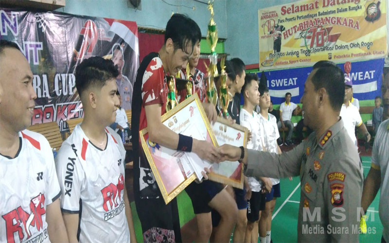 Kegiatan ini turut dihadiri oleh Wakapolresta Pontianak AKBP Hendrawan, S.I.K., M.H., Danramil Pontianak Utara, Camat Pontianak Utara, Kapolsek Pontianak Utara Akp Suryadi, serta perwakilan dari PBSI Kota Pontianak, termasuk Bapak Danar selaku owner Lapangan Andaria yang juga memberikan dukungan penuh terhadap terselenggaranya turnamen ini.