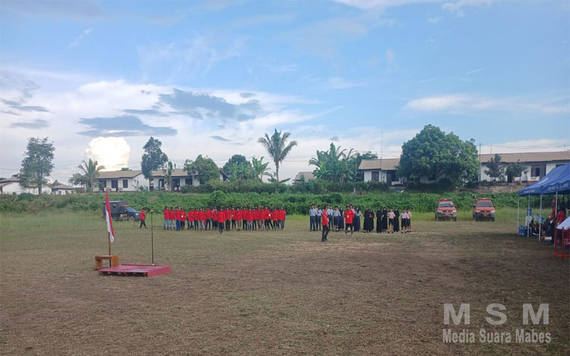 MediaSuaraMabes, Ketapang – Kapolsek Marau Polres Ketapang yang diwakili oleh Kanit Samapta Polsek Marau, Aipda Cornel P. Siahaan, menghadiri kegiatan Apel Siaga Kebakaran Hutan dan Lahan (Karhutla) yang digelar di Lapangan Sepak Bola PT. Kencana Graha Permai, Desa Rangkong, Kecamatan Marau, Kabupaten Ketapang, pada Rabu (16/07/2025).