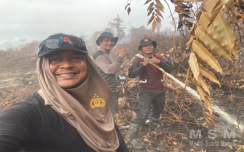 MediaSuaraMabes, Kampar Tapung – Upaya penanganan kebakaran lahan gambut di Dusun II Sei Pantau, Desa Karya Indah, Kecamatan Tapung, Kabupaten Kampar, masih berlangsung. Hingga hari kedelapan (Sabtu, 5/7/2025), upaya difokuskan pada pendinginan untuk mencegah munculnya api kembali. Kapolsek Tapung memimpin langsung tim gabungan yang terus bekerja keras memastikan situasi aman dan terkendali.