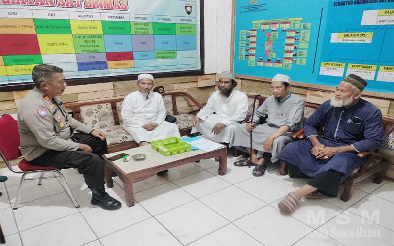 MediaSuaraMabes, Ketapang Kalbar –  Dalam rangka memperkuat sinergi antara Polri dan tokoh agama untuk menciptakan situasi keamanan dan ketertiban masyarakat (sitkamtibmas) yang kondusif di wilayah Kabupaten Ketapang, Kasat Binmas Polres Ketapang, AKP H. Sumiadinata, melaksanakan kegiatan silaturahmi bersama para tokoh Agama /ulama di ruang Sat Binmas Polres Ketapang. Senin, (9/6/ 2025)