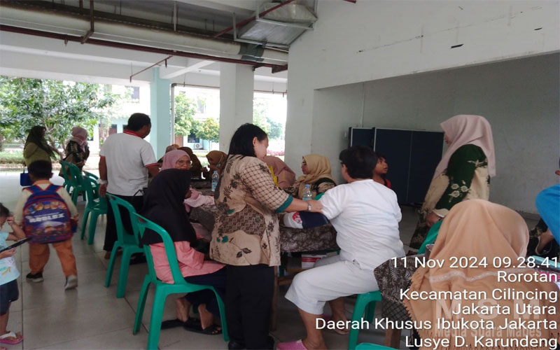 “Melalui kegiatan ini, kami ingin memastikan bahwa lansia di lingkungan Rusunawa Rorotan tetap mendapatkan perhatian khusus terkait kesehatan mereka. Selain itu, ini adalah kesempatan bagi warga untuk berkonsultasi langsung dengan tenaga medis yang hadir,” ujar Lusi Karundeng Sekretaris RW 014.