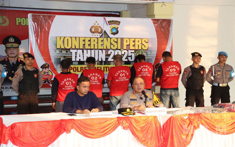 MediaSuaraMabes, Babel – Polres Belitung Timur gelar jumpa pers terkait kasus pengeroyokan terhadap wartawan L(38), J(48), H(55) yang terjadi di Desa Mengkubang Kec. Damar Kab. Beltim, Kamis(17/07/2025) kemarin.