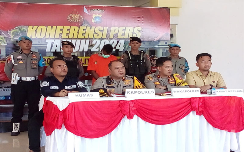 MediaSuaraRakyat (MSM Network), Babel – Kapolres Beltim,AKBP Indra Feri Dalimunthe.,SH.,SIK.,MH.,pimpin langsung Konferensi Pers terkait kasus pembunuhan di Wilkum Polres Beltim, pada hari kamis,14/11/2024.Dimana dalam Konferensi Pers Kapolres Beltim di dampingi Wakapolres Beltim,Kasat Reskrim dan Kasubsi PIDM si Humas Polres Beltim di Joglo Graha Patritama Polres Beltim.
