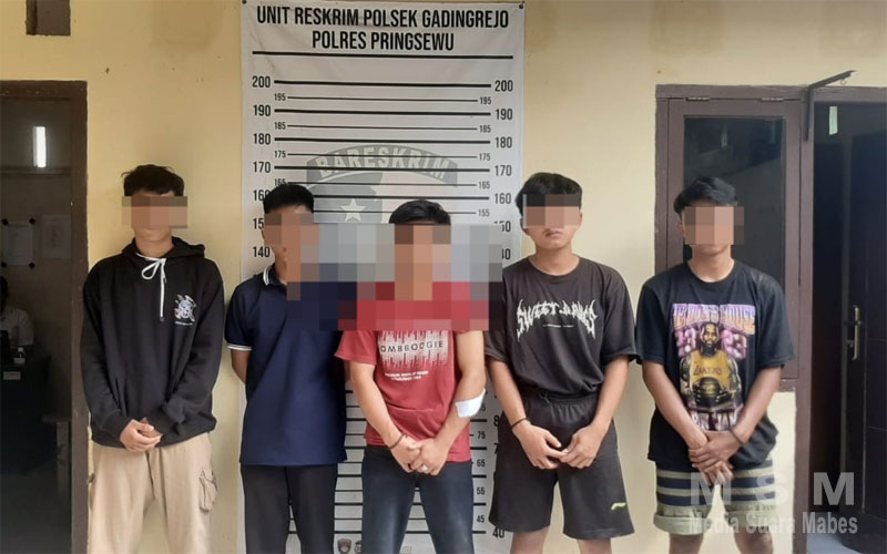 Kapolsek Gadingrejo AKP Nurul Haq mewakili Kapolres Pringsewu AKBP benny Prasetya menjelaskan, kelima remaja tersebut yakni TM (17), RA (17), MA (17), A (17) warga Pekon Sukaratu kecamatan Pagelaran dan EC (17) warga Pekon Wates Kecamatan Gadingrejo Kabupaten Pringsewu.