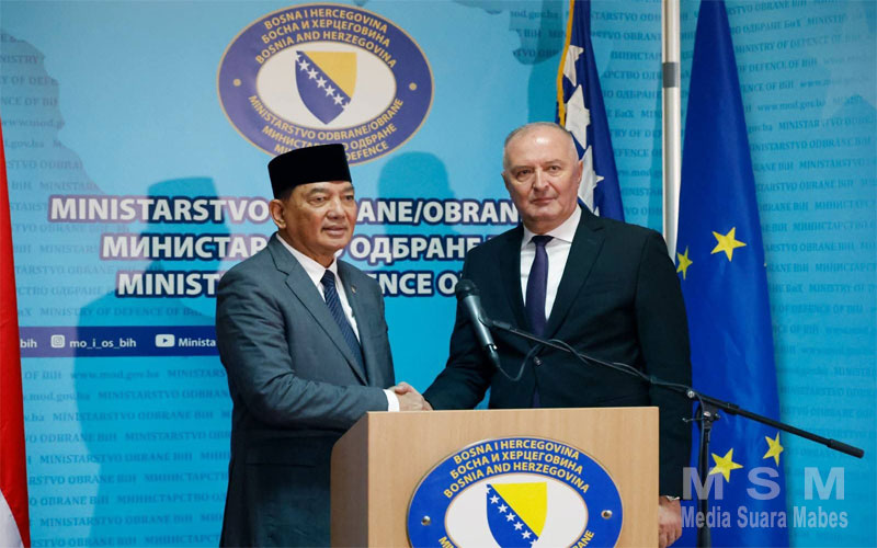 MediaSuaraMabes, Bosnia – Menhan RI Sjafrie Sjamsoeddin melaksanakan kunjungan resmi ke Bosnia dan Herzegovina dalam rangka pertemuan bilateral dengan Menhan Bosnia dan Herzegovina Zukan Helez, yang berlangsung di Kemhan Bosnia dan Herzegovina, Sarajevo, pada Minggu (11/1).