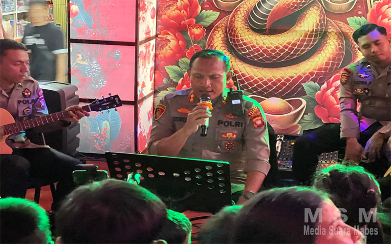 MediaSuaraRakyat (Jaringan MSM), Landak Kalbar ~ Ceria Imlek di Landak kali ini terasa berbeda dan istimewa. Hiburan yang tak biasa menggema di kompleks Pasar Baru Ngabang, tepat di depan Warung Kopi Amiang, Minggu (19/1/2025). Di tengah keramaian masyarakat yang antusias, Kapolres Landak, AKBP Siswo Dwi Nugroho, S.H., S.I.K., bersama kelompok musik Gita Rajawali Polres Landak, sukses menghadirkan suasana penuh keceriaan melalui aksi unik mereka, Ngamen Kamtibmas.