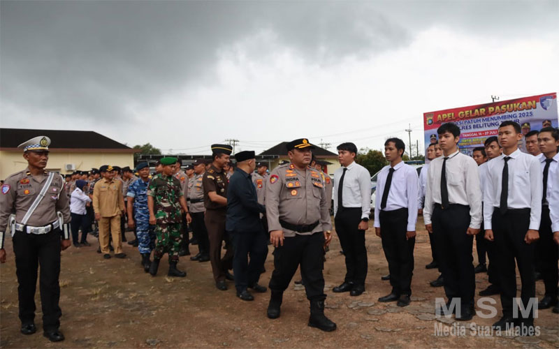MediaSuaraMabes, Babel – Polres Belitung Timur melaksanakan Gelar Pasukan Operasi Patuh Menumbing 2025 yang dipimpin oleh Kapolres Belitung Timur AKBP Indra Feri Dalimunthe, S.H., S.I.K., M.H., di Halaman Depan Mapolres Belitung Timur, Senin (14/7/2025).