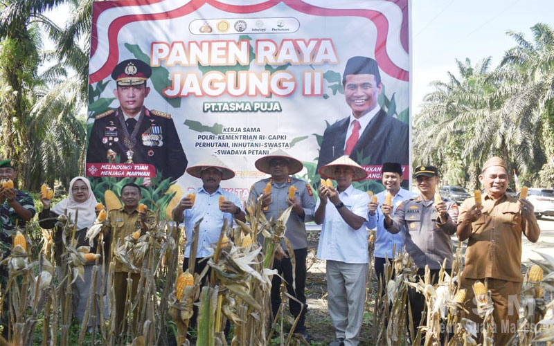 Kapolres Kampar bersama Forkopimcam dan PT. Tasma Puja kemudian melakukan panen raya jagung secara simbolis. Tak hanya itu, Kapolres juga ikut memipil jagung dan berbaur dengan para petani.