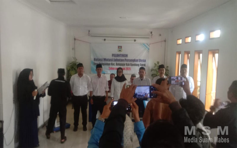 MediaSuaraMabes, Bandung Barat — Pemerintah Desa Pangauban, Kecamatan Batujajar, Kabupaten Bandung Barat, menggelar pelantikan perangkat desa baru sebagai bagian dari upaya penyegaran struktural demi mewujudkan tata kelola pemerintahan desa yang lebih profesional dan responsif terhadap kebutuhan masyarakat. Acara pelantikan berlangsung di aula kantor desa dengan dihadiri oleh Camat Batujajar, Bhabinkamtibmas, Babinsa, perwakilan BPD, tokoh masyarakat, serta keluarga dari perangkat yang dilantik.
