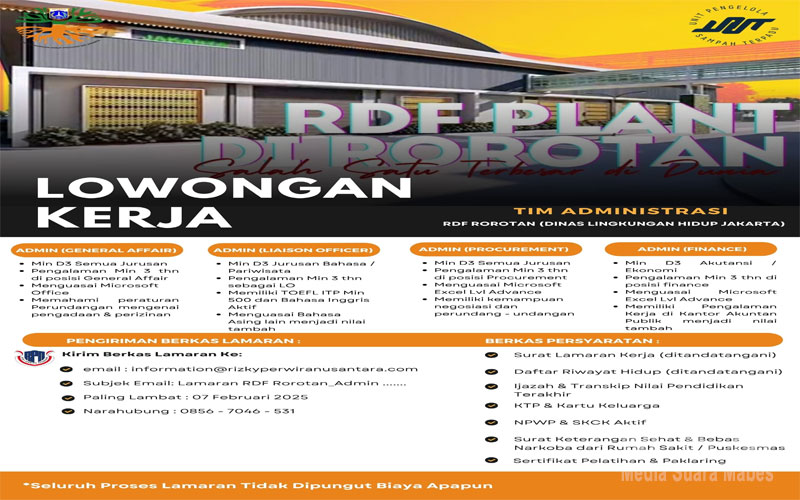 Perekrutan ini membuka berbagai posisi yang sesuai dengan kebutuhan operasional di RDF Plant, memberikan kesempatan bagi warga Rorotan untuk memperoleh pekerjaan yang stabil dan berkontribusi langsung dalam menjaga kebersihan lingkungan.