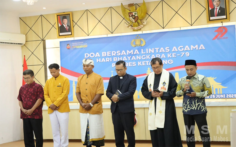 MediaSuaraMabes, Ketapang – Polres Ketapang menggelar acara doa bersama lintas agama yang melibatkan enam pemuka agama dari berbagai keyakinan yang ada di Indonesia. Kegiatan ini digelar dalam rangka mengisi rangkaian peringatan Hari Bhayangkara ke – 79. Doa Bersama yang berlangsung khidmat tersebut di laksanakan di Aula Mapolres Ketapang Jalan Brigjend katamso Nomor 01 Ketapang, pada Kamis pagi (26/06/2025).