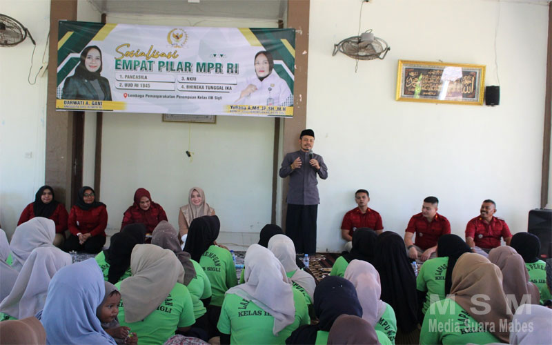 MediaSuaraMabes, Sigli – Lembaga Pemasyarakatan (Lapas) Perempuan Kelas IIB Sigli, Kamis siang (24/07) kedatangan tamu istimewa, yaitu anggota DPD RI/MPR RI periode 2024-2029 daerah pemilihan Aceh, Darwati A. Gani beserta rombongan. Kunjungan ini merupakan agenda Darwati A. Gani untuk memberikan sosialisasi Empat Pilar Majelis Pemusyarawatan Rakyat (MPR) Republik Indonesia (RI) kepada petugas dan warga binaan Lapas Perempuan Kelas IIB Sigli.