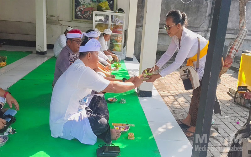 Kegiatan sakral ini dipimpin oleh Jro Mangku Sriaka, didampingi oleh Jro Mangku Polsek AIPDAI Made Kardias dan AIPTU I Komang Suradnya.
