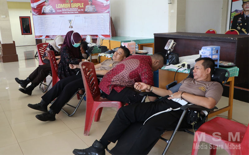 MediaSuaraMabes, Babel – Dalam rangka menyambut Hari Bhayangkara ke-79, Kepolisian Resor Belitung Timur (Polres Beltim) sukses menggelar kegiatan Bakti Kesehatan Donor Darah, Kamis(12/06/ 2025).