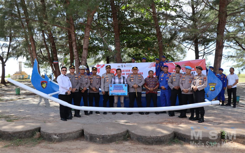 MediaSuaraMabes, Babel – Dalam rangka menyambut Hari Bhayangkara ke-79, Kepolisian Resor Belitung Timur menunjukkan kepeduliannya terhadap masyarakat nelayan dengan menyerahkan bantuan perahu kater. Kegiatan ini berlangsung di Mako Sat Polairud Polres Belitung Timur, Desa Baru, Kecamatan Manggar, Kabupaten Belitung Timur, Selasa (17/06/2025) pukul 10.00 WIB.