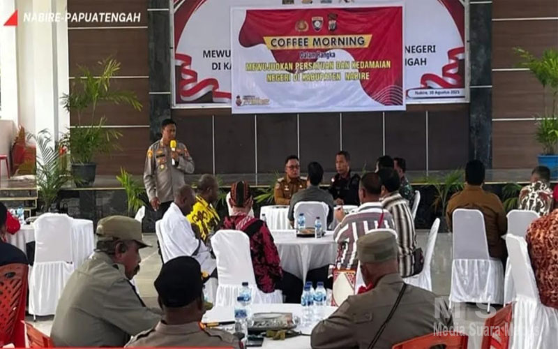 MediaSuaraMabes, Nabire Papua Tengah – Kepolisian Resor Nabire, menggelar kegiatan Coffee Morning bersama Forkopimda, aparat keamanan, serta tokoh masyarakat dan agama dalam rangka mewujudkan persatuan dan kedamaian di Kabupaten Nabire. Senin, (01/09/2025) siang, bertempat di Aula Wicaksana Laghawa Polres Nabire.
