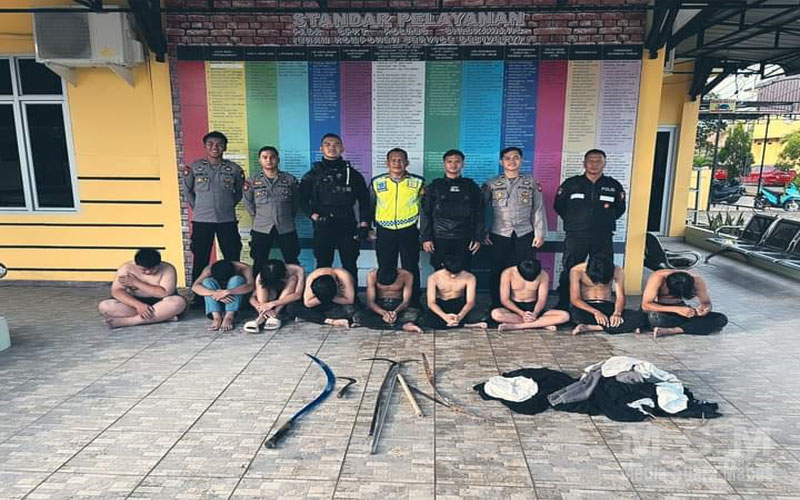 Kasat Samapta, Kasat Intelkam, dan Piket Pawas turut mendatangi lokasi kejadian untuk memastikan situasi aman terkendali. Dari hasil interogasi awal, sembilan pelaku yang diamankan mengaku berasal dari kelompok remaja yang menamakan diri mereka sebagai “Genk ASK”. Mereka terlibat bentrokan dengan kelompok remaja lainnya yang dikenal dengan nama “Genk BOGENG”