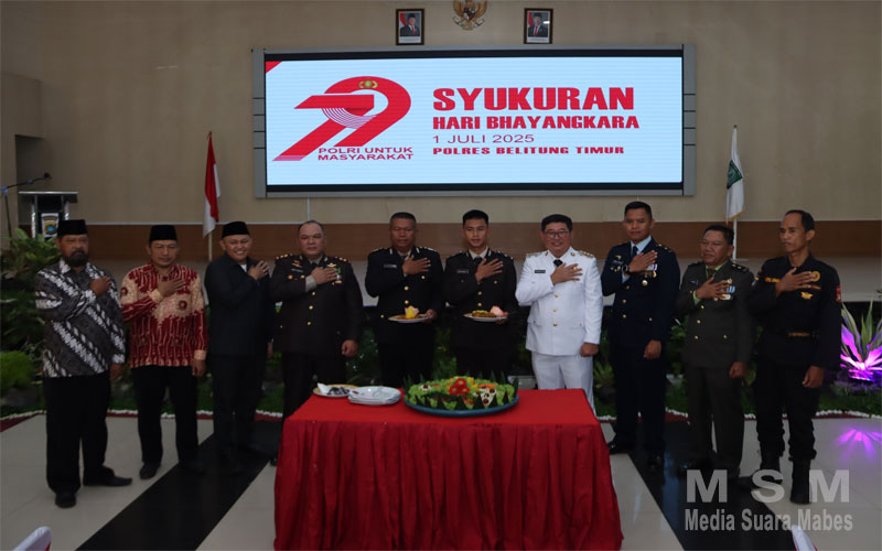 MediaSuaraMabes, Babel – Polres Belitung Timur hari menggelar acara syukuran dalam rangka memperingati Hari Bhayangkara ke-79 Tahun 2025, Selasa(01/07/2025).
