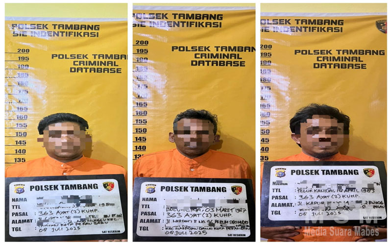 MediaSuaraMabes, Kampar Tambang – Kejahatan pencurian atap seng yang menimpa beberapa rumah di Perumahan Mutiara Aishafa, Desa Kualu, Kecamatan Tambang, Kabupaten Kampar, akhirnya terungkap. Selasa (8/7/2025), Polsek Tambang berhasil mengamankan tiga tersangka yang terlibat dalam aksi pencurian tersebut. Keberhasilan ini tidak lepas dari kewaspadaan warga dan kerja keras pihak Kepolisian.