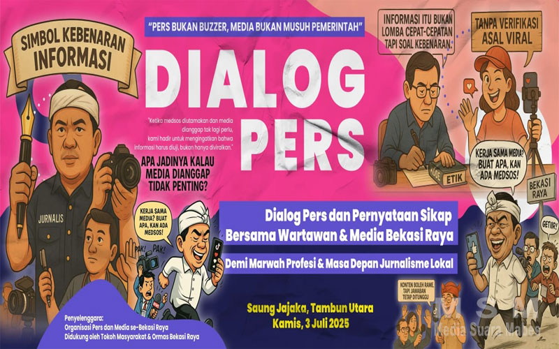 MediaSuaraMabes, Bekasi – Ratusan insan pers Kabupaten Bekasi dan Kota Bekasi berkumpul di Saung Jajaka, Tambun Utara Kabupaten Bekasi, Kamis, 03 Juli 2025. Mereka menyoal statemen Gubernur Jawa Barat yang akrab dipanggil Kang Dedi Mulyadi (KDM) karena secara terang terangan mengajak masyarakat untuk tidak bekerjasama dengan media. Statemen itu viral di media sosial dan menyakiti perasaan insan media.
