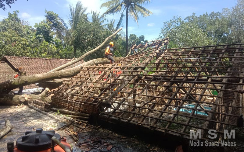 MediaSuaraMabes, Guyangan – Sebuah insiden terjadi di Desa Guyangan, RT 4 RW 1, pada malam Selasa ketika sebuah pohon tumbang menimpa rumah warga akibat hujan deras disertai angin kencang.