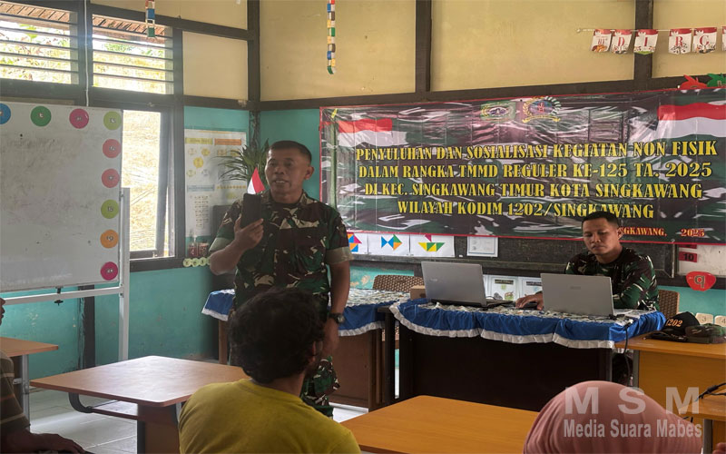MediaSuaraMabes, Singkawang – Satuan Tugas (Satgas) TNI Manunggal Membangun Desa (TMMD) Reguler ke-125 Kodim 1202/Singkawang menggelar sosialisasi bahaya judi online kepada masyarakat di Jl. Gambir, Kelurahan Mayasopa, Kecamatan Singkawang Timur, Kota Singkawang. Senin (04/08/2025).