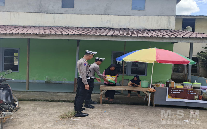 Dalam kegiatan ini, petugas Satlantas tidak hanya memastikan kelancaran arus lalu lintas, tetapi juga menyalurkan bantuan sosial berupa tiga karung beras (5 kg) kepada pedagang keliling. Dua karung beras diberikan kepada pedagang siomay di Jalan Panglima Naga, sementara satu karung lainnya diserahkan kepada pedagang pentol kuah di Jalan Merdeka Timur.
