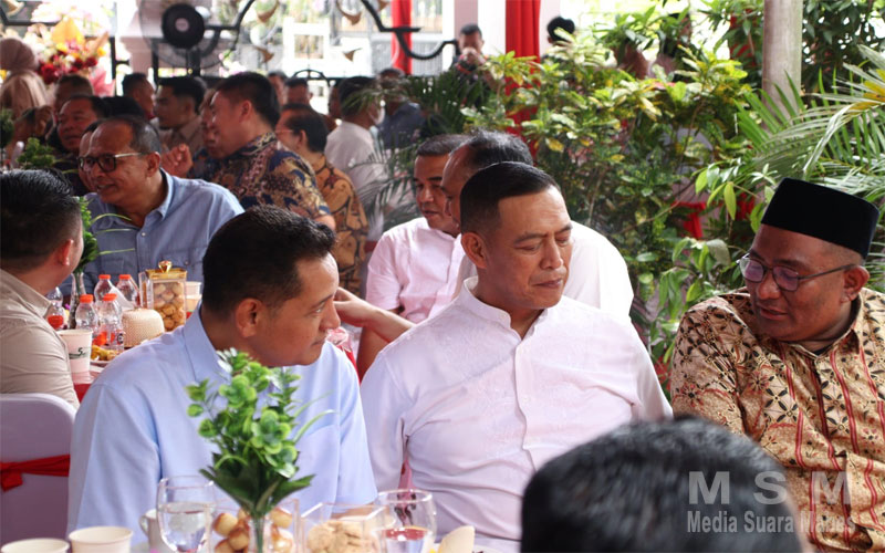 MediaSuaraMabes, Pontianak – Dalam rangka mempererat tali silaturahmi, Sinergi dan Harmoni di Bumi Khatulistiwa pada perayaan Idul Fitri 1446 H/2025, Kapolda Kalbar Irjen Pol Pipit Rismanto S.I.K didampingi oleh Waka Polda Kalbar Brigjen Pol Roma Hutajulu, S.I.K., Para PJU Polda Kalbar, Gubernur Kalbar Drs. H. Ria Norsan, M.M., M.H., Pimpinan TNI, Perangkat Daerah Kubu Raya, Tokoh Masyarakat, Tokoh Adat, Tokoh Agama serta Masyarakat Kubu Raya melaksanakan silaturahmi di Kediaman Bupati Kubu Raya H.Sujiwo, S.E, M.Sos., bertempat di Rumah Kediaman Bupati Kubu Raya, Jl.Sui Raya Dalam. (Rabu, 2/4)
