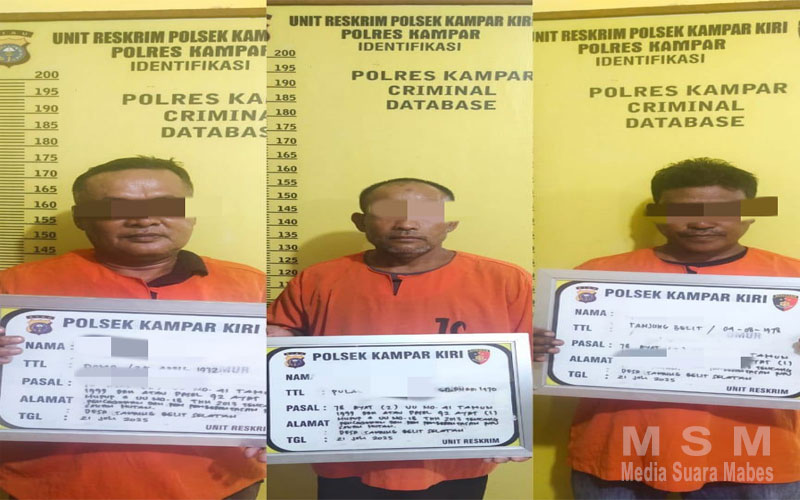 MediaSuaraMabes, Kamparkiri – Jajaran Polsek Kampar Kiri mengamankan tiga pelaku Perambahan hutan atau menduduki kawasan hutan tanpa hak di desa Tanjung Belit, Kecamatan Kampar Kiri Hulu, Kabupaten Kampar, Minggu (20/7/2025) sekira pukul 09.00 Wib.